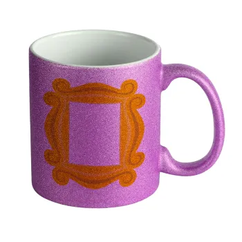 Friends frame, Κούπα Μωβ Glitter που γυαλίζει, κεραμική, 330ml