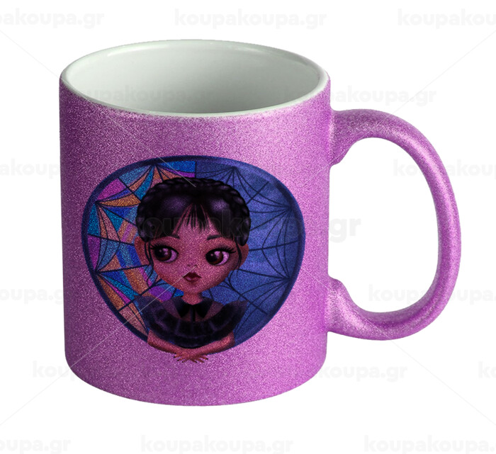 Wednesday big eyes, Κούπα Μωβ Glitter που γυαλίζει, κεραμική, 330ml