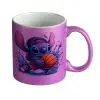 Stitch Basketball, Κούπα Μωβ Glitter που γυαλίζει, κεραμική, 330ml