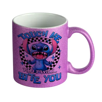 Stitch Touch Me And I Will Bite You, Κούπα Μωβ Glitter που γυαλίζει, κεραμική, 330ml