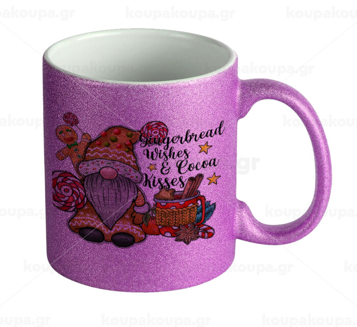 Gingerbread Wishes, Κούπα Μωβ Glitter που γυαλίζει, κεραμική, 330ml