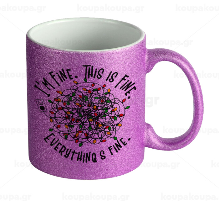 It's Fine I'm Fine Everything Is Fine, Κούπα Μωβ Glitter που γυαλίζει, κεραμική, 330ml
