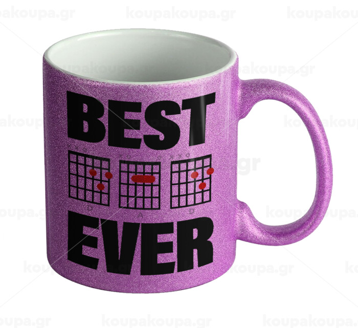 Best DAD Ever συγχορδίες κιθάρας, Κούπα Μωβ Glitter που γυαλίζει, κεραμική, 330ml