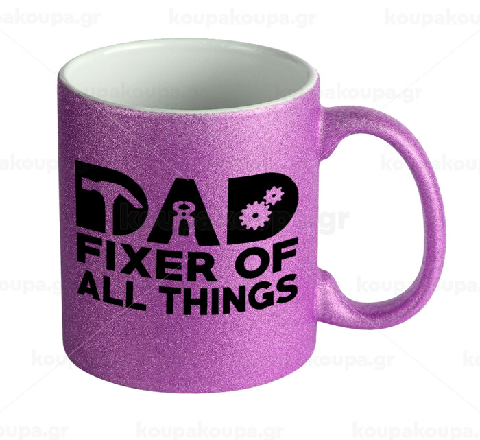 DAD, fixer of all thinks, Κούπα Μωβ Glitter που γυαλίζει, κεραμική, 330ml