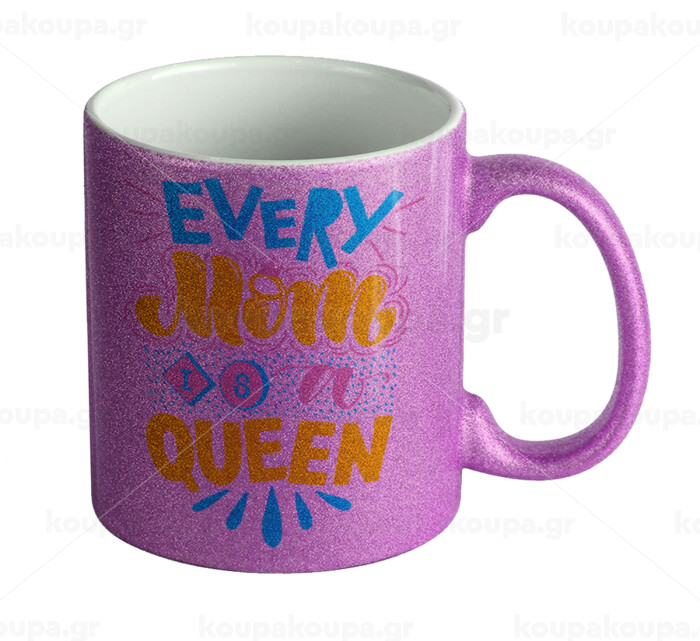 Every mom is a Queen, Κούπα Μωβ Glitter που γυαλίζει, κεραμική, 330ml