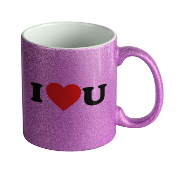 I ❤️ U, Κούπα Μωβ Glitter που γυαλίζει, κεραμική, 330ml