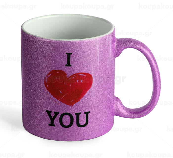 I Love You, Κούπα Μωβ Glitter που γυαλίζει, κεραμική, 330ml