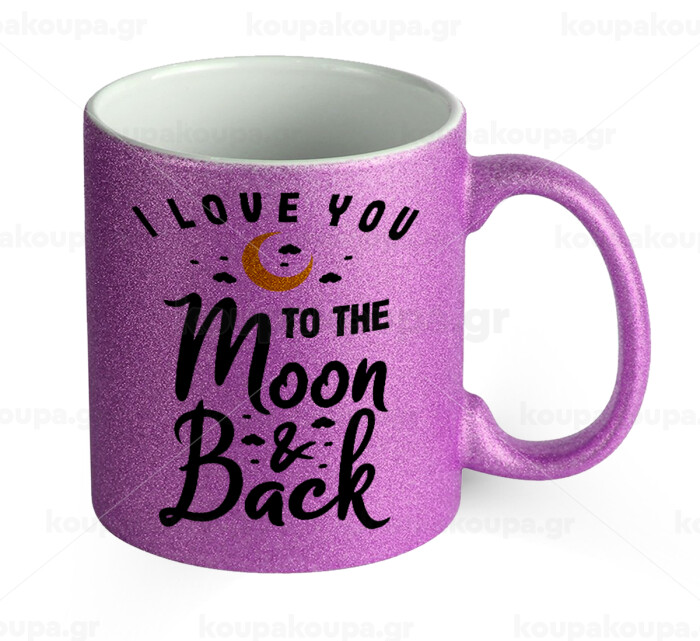 I love you to the moon and back, Κούπα Μωβ Glitter που γυαλίζει, κεραμική, 330ml