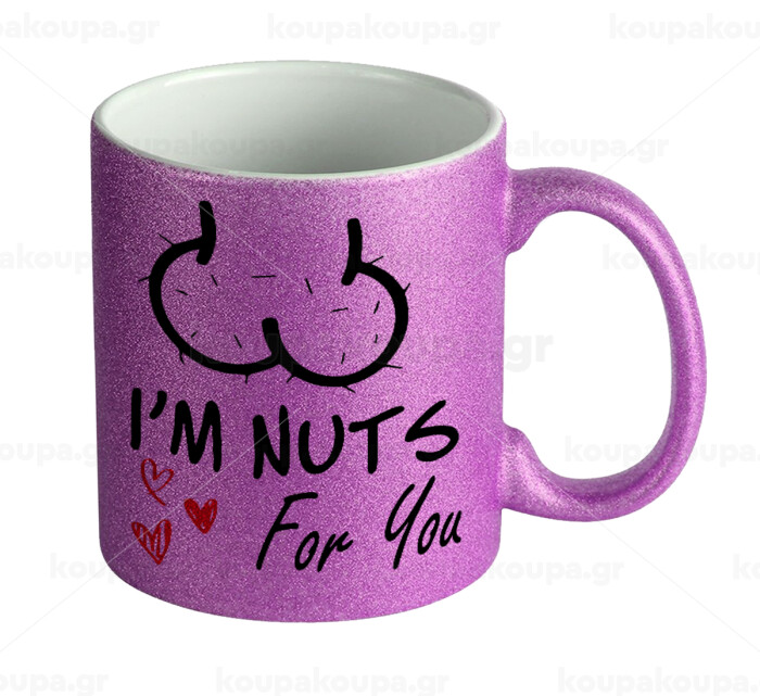 I'm Nuts for you, Κούπα Μωβ Glitter που γυαλίζει, κεραμική, 330ml