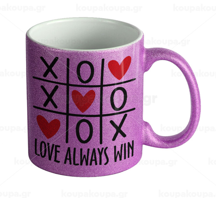Love always win, Κούπα Μωβ Glitter που γυαλίζει, κεραμική, 330ml