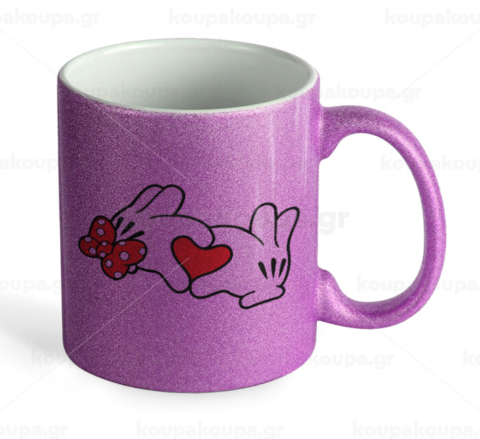 Love hands, Κούπα Μωβ Glitter που γυαλίζει, κεραμική, 330ml