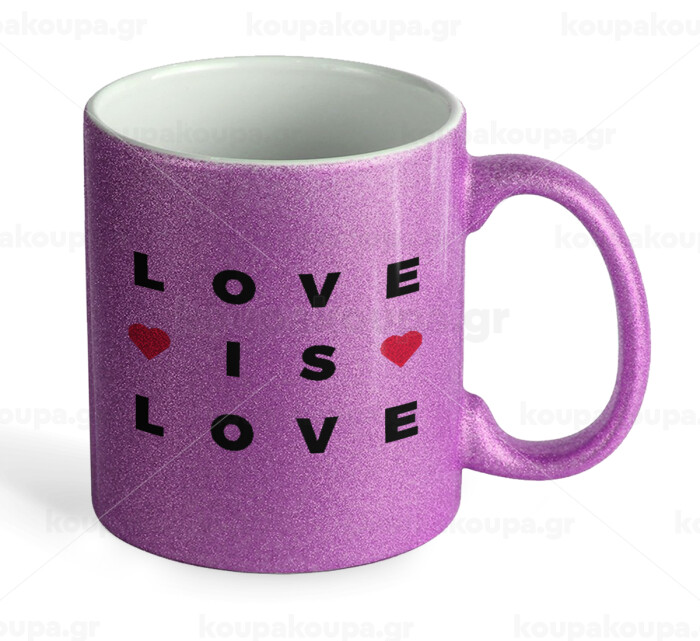 Love is Love, Κούπα Μωβ Glitter που γυαλίζει, κεραμική, 330ml