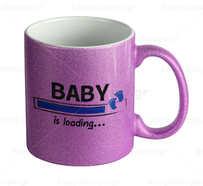 Baby is Loading BOY, Κούπα Μωβ Glitter που γυαλίζει, κεραμική, 330ml