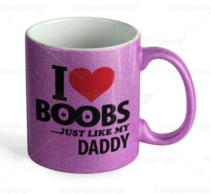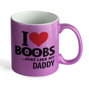 I Love boobs ...just like my daddy, Κούπα Μωβ Glitter που γυαλίζει, κεραμική, 330ml