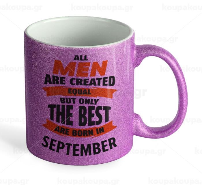 All men are created equal but only the best are born in September, Κούπα Μωβ Glitter που γυαλίζει, κεραμική, 330ml