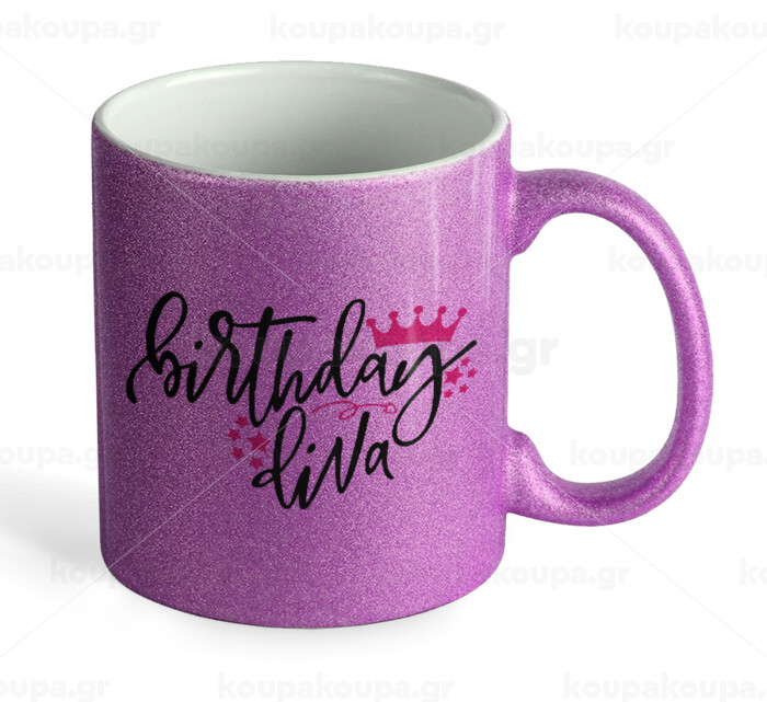 Birthday Diva queen, Κούπα Μωβ Glitter που γυαλίζει, κεραμική, 330ml
