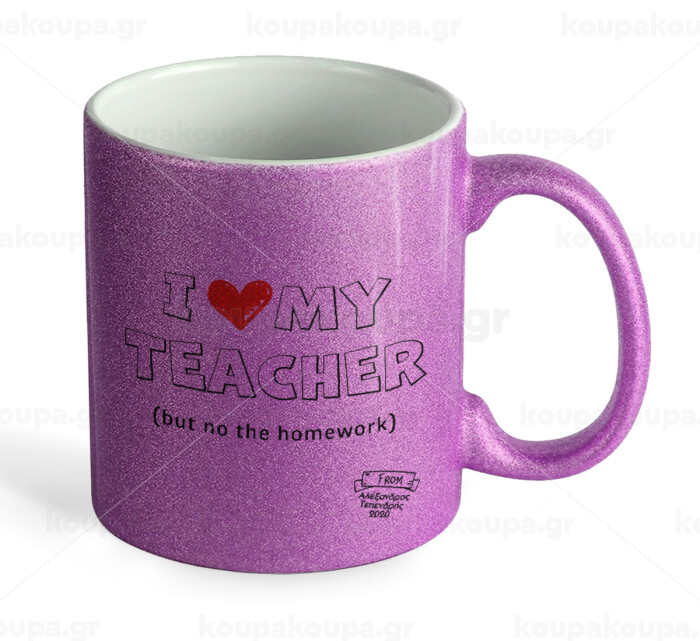 i love my teacher but no the homework outline, Κούπα Μωβ Glitter που γυαλίζει, κεραμική, 330ml