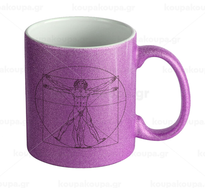 Leonardo da vinci Vitruvian Man, Κούπα Μωβ Glitter που γυαλίζει, κεραμική, 330ml