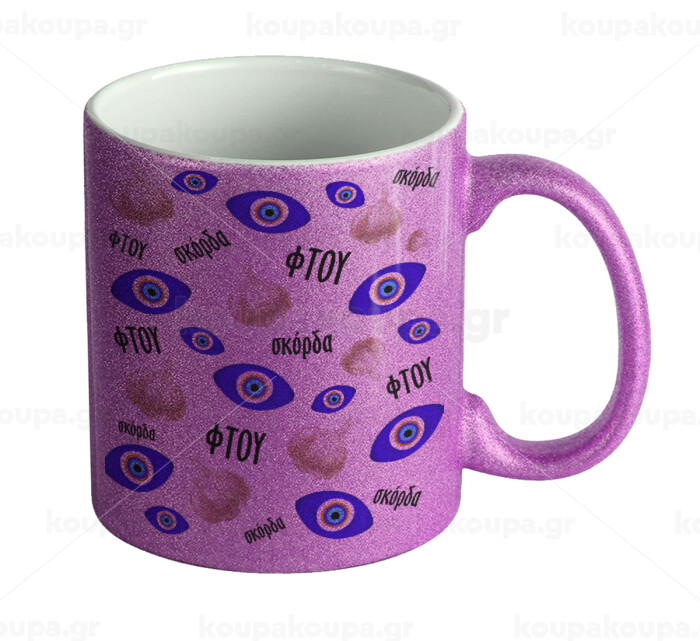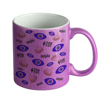 Φτου, φτου, σκόρδα!!!, Κούπα Μωβ Glitter που γυαλίζει, κεραμική, 330ml