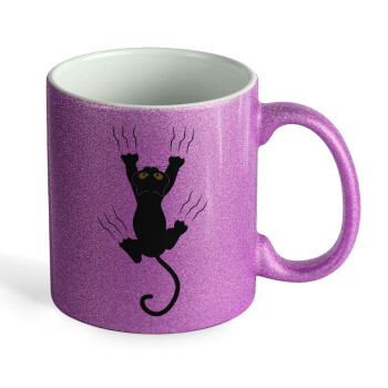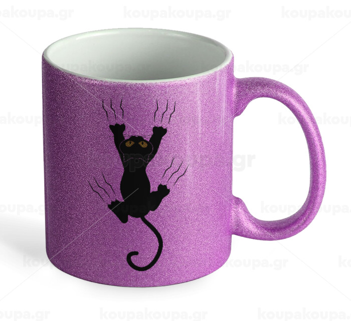 Γατούλα γρατζουνιά, Κούπα Μωβ Glitter που γυαλίζει, κεραμική, 330ml