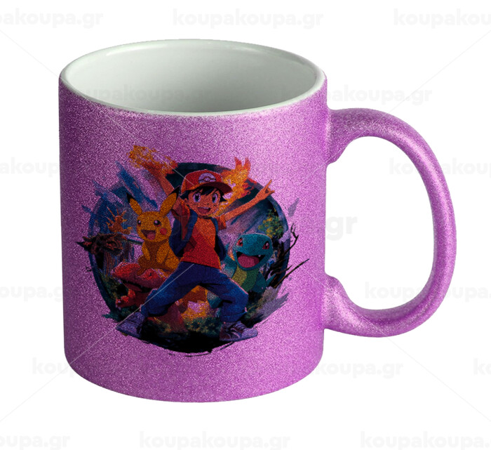 Ash Ketchum & Pikachu, Κούπα Μωβ Glitter που γυαλίζει, κεραμική, 330ml