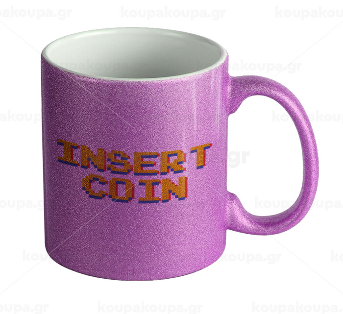 Insert coin!!!, Κούπα Μωβ Glitter που γυαλίζει, κεραμική, 330ml