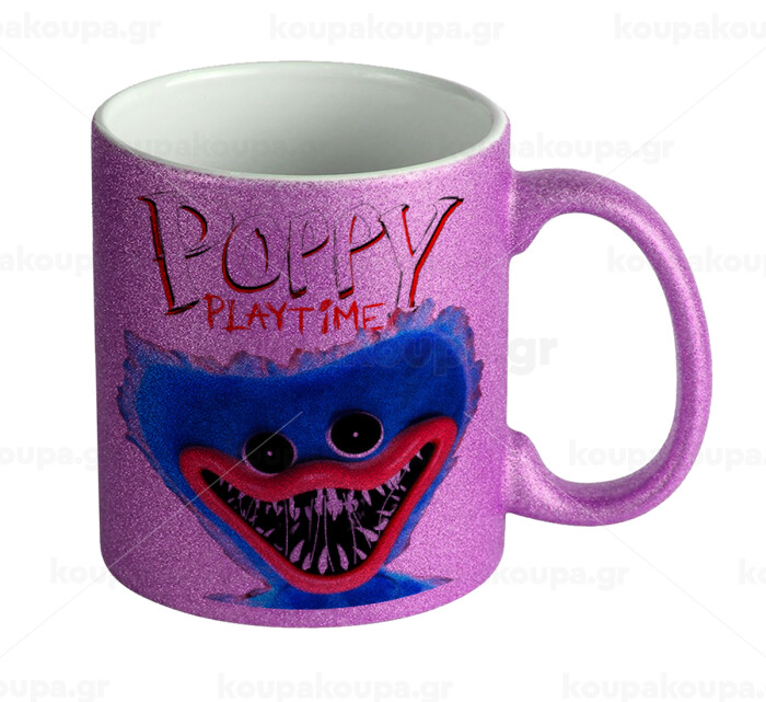 Poppy Playtime Huggy wuggy, Κούπα Μωβ Glitter που γυαλίζει, κεραμική, 330ml
