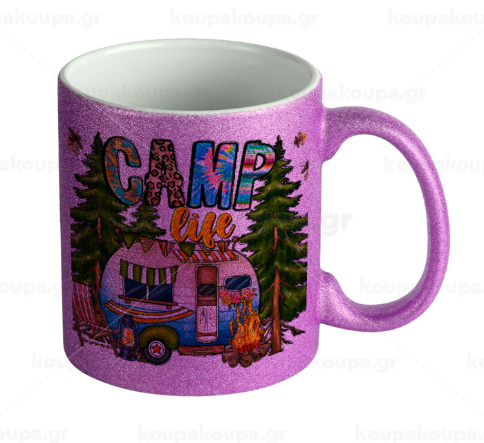 Camp Life, Κούπα Μωβ Glitter που γυαλίζει, κεραμική, 330ml
