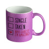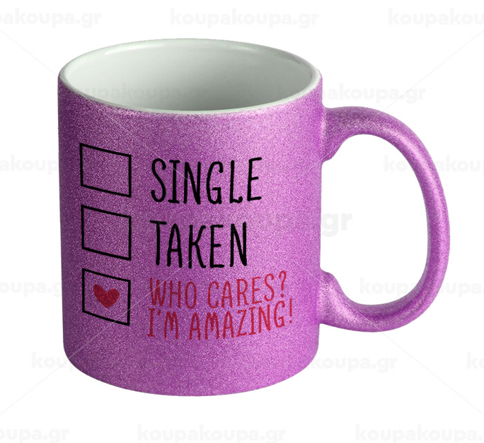 Single, Taken, Who cares i'm amazing, Κούπα Μωβ Glitter που γυαλίζει, κεραμική, 330ml