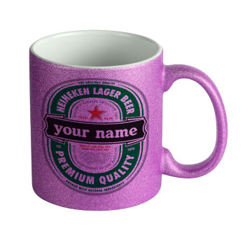 Heineken με όνομα, Κούπα Μωβ Glitter που γυαλίζει, κεραμική, 330ml