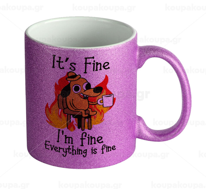It's Fine I'm Fine Everything Is Fine, Κούπα Μωβ Glitter που γυαλίζει, κεραμική, 330ml