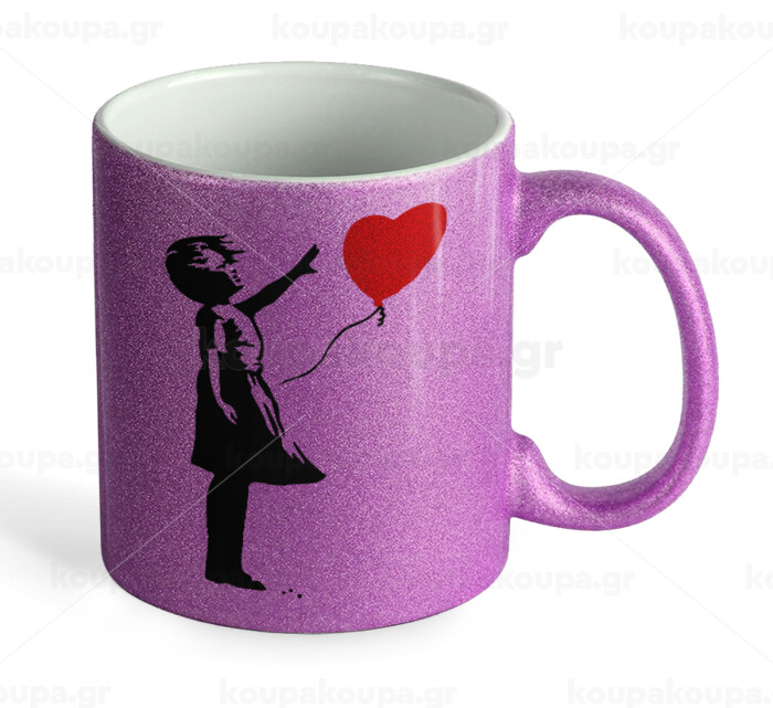 Banksy (Hope), Κούπα Μωβ Glitter που γυαλίζει, κεραμική, 330ml