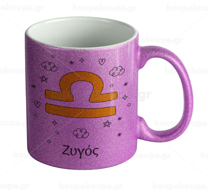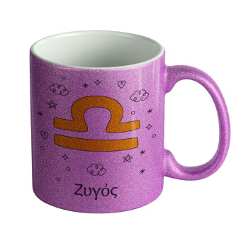 Ζώδια Ζυγός, Κούπα Μωβ Glitter που γυαλίζει, κεραμική, 330ml