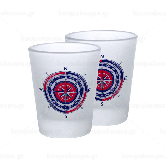 Ανεμολόγιο χάρτης πυξίδα ναυτικού, Σφηνοπότηρα γυάλινα 45ml του πάγου (2 τεμάχια)
