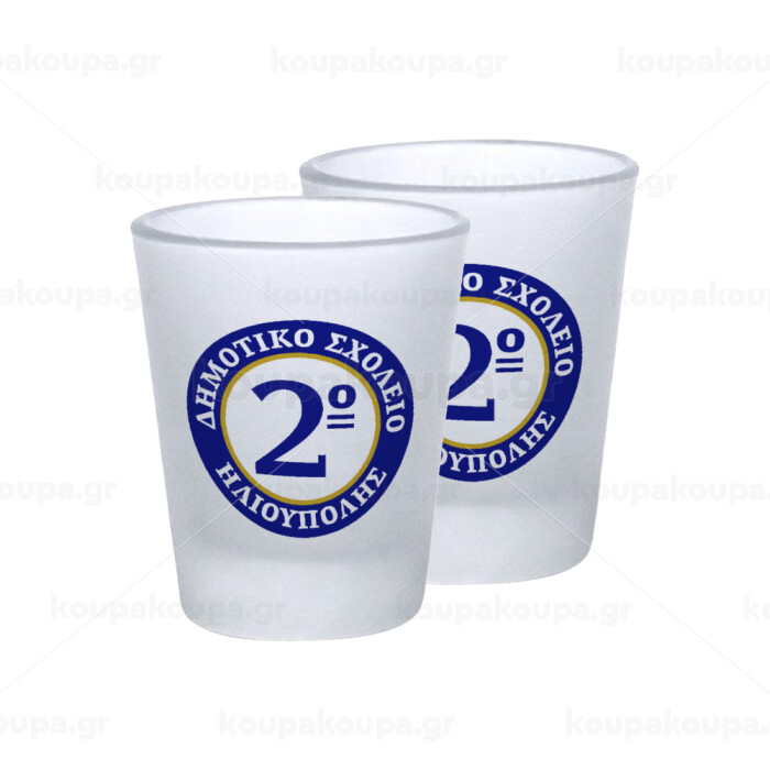 Έμβλημα Σχολικό μπλε/χρυσό, Σφηνοπότηρα γυάλινα 45ml του πάγου (2 τεμάχια)
