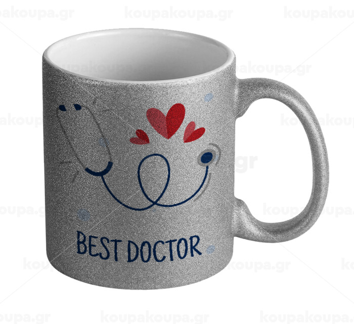 Best Doctor, Κούπα Ασημένια Glitter που γυαλίζει, κεραμική, 330ml