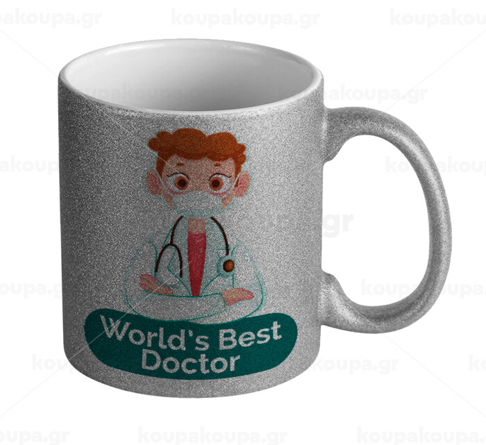 World's Best Doctor, Κούπα Ασημένια Glitter που γυαλίζει, κεραμική, 330ml