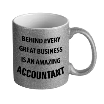 Behind every great business, Κούπα Ασημένια Glitter που γυαλίζει, κεραμική, 330ml