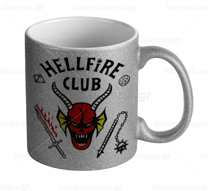 Hellfire CLub, Stranger Things, Κούπα Ασημένια Glitter που γυαλίζει, κεραμική, 330ml