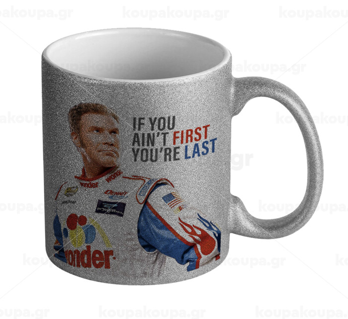If You Ain't First You're Last Ricky Bobby, Talladega Nights, Κούπα Ασημένια Glitter που γυαλίζει, κεραμική, 330ml