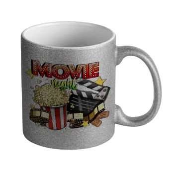 Movie night, Κούπα Ασημένια Glitter που γυαλίζει, κεραμική, 330ml