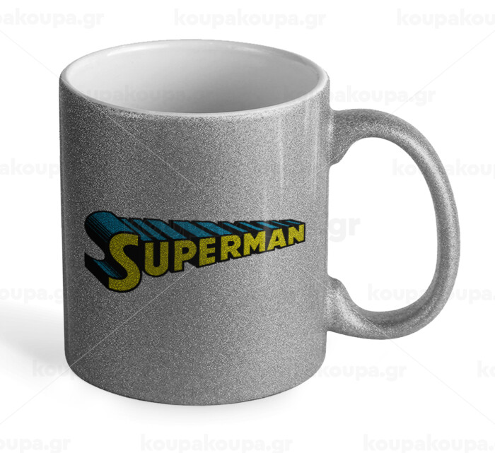 Superman vintage, Κούπα Ασημένια Glitter που γυαλίζει, κεραμική, 330ml