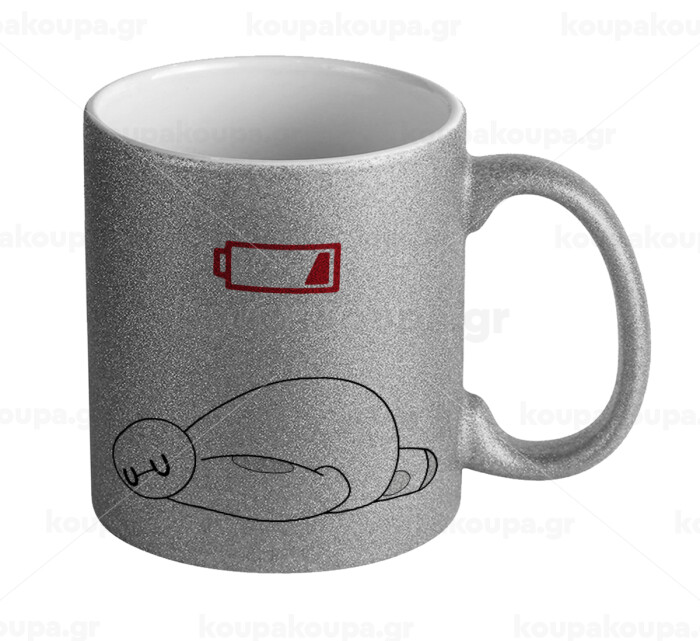 Baymax battery low, Κούπα Ασημένια Glitter που γυαλίζει, κεραμική, 330ml