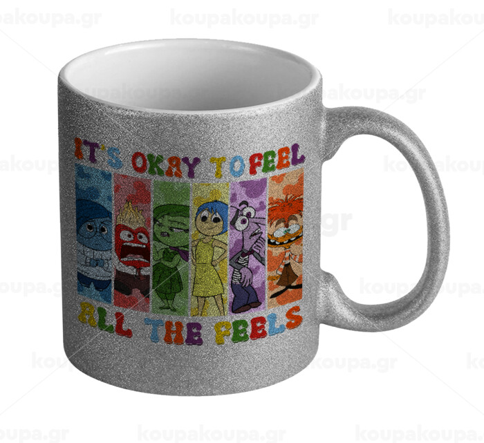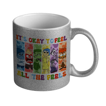 Inside Out It's Okay To Feel All The Feels , Κούπα Ασημένια Glitter που γυαλίζει, κεραμική, 330ml