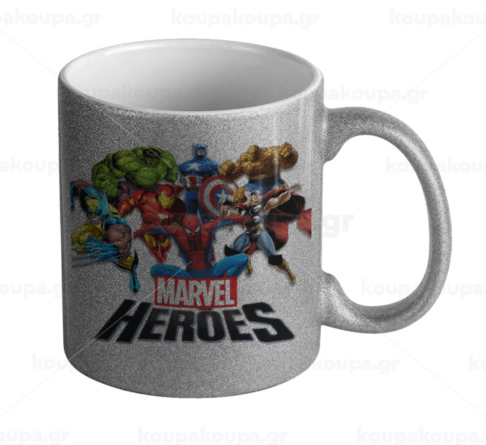 MARVEL heroes, Κούπα Ασημένια Glitter που γυαλίζει, κεραμική, 330ml