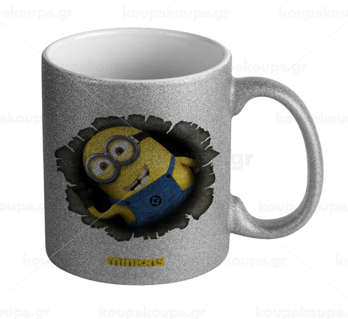 Minions hi, Κούπα Ασημένια Glitter που γυαλίζει, κεραμική, 330ml