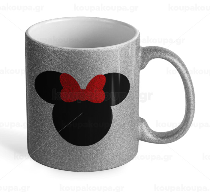 Minnie head, Κούπα Ασημένια Glitter που γυαλίζει, κεραμική, 330ml