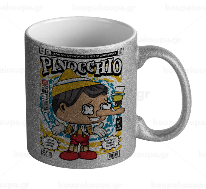 Pinocchio, Κούπα Ασημένια Glitter που γυαλίζει, κεραμική, 330ml