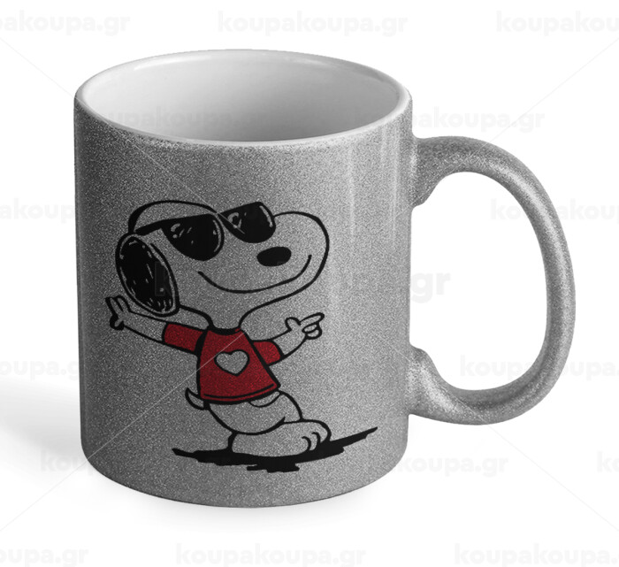 Snoopy καρδούλα, Κούπα Ασημένια Glitter που γυαλίζει, κεραμική, 330ml