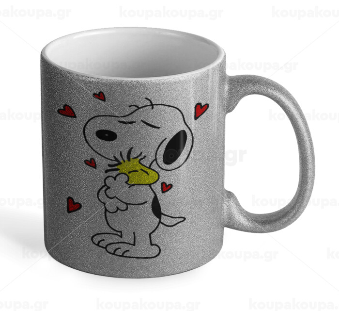 Snoopy Love, Κούπα Ασημένια Glitter που γυαλίζει, κεραμική, 330ml